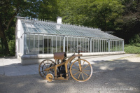 So entsteht der Daimler Reitwagen, der von einem Einzylindermotor mit 264 Kubikzentimeter Hubraum und 0,5 PS Leistung (0,37 kW) bei 600/min angetrieben wird. Die Kraftübertragung übernimmt ein Lederriemen, der im Stand auf zwei verschieden große Riemenscheiben gelegt werden kann eine einfache Form der Zweigangschaltung.