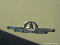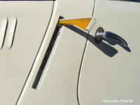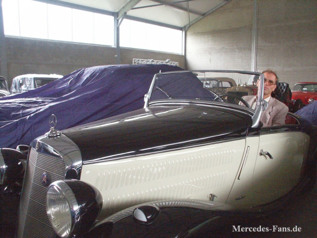 Du bist doch ein Roadster! Tatsächlich, erst jetzt nahm ich mein Hinterteil in Augenschein und es wurde mir bewusst, dass ich nicht so aussah wie alle, die neben mir standen. Dort, wo die anderen eine Innenlenkerkabine oder gar ein dickes Cabrioverdeck mit Kutschenstangen hatten, war bei mir nichts davon! Dafür aber hatten mir meine Erbauer ein Hinterteil verpasst, wie ich es nur von den großen Kompressorsportwagen her kannte. Ein langes flach abfallendes Heck, wo das Reserverad in einer maßgeschneiderten Mulde eingebettet ist, und davor, anstelle des Kofferraumes, ein Klappdeckel unter dem 2 Notsitze hervorgezaubert werden können. Ein Dach sollte ich auch nicht brauchen, so ein Auto sei nicht für Alltagswetter gedacht! Nur um meinem schönen roten Lederinterieur einen gewissen Schutz zu geben, konnte mein Fahrer ein Verdeck überziehen, das hinter der Rückenlehne zusammengefaltet ist, und kleine Fenster auf die Türen aufstecken. Aber am schönsten bin ich oben ohne - Sportroadster, wie ich in den Verkaufskatalogen genannt werde, ganz nach dem Vorbild der 500K- oder 540K-Spezialroadster. Selten bin ich auch noch, das habe ich später herausgefunden. Nur 270 Brüder und Schwestern habe ich unter den vielen Tausend meiner Art, und nur 7 von uns soll es heute in Europa noch geben.