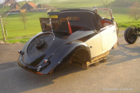 Mit der nötigen Sachkenntnis und entsprechendem - jedem Ungeduldigen wie meinem Besitzer endlos lang erscheinenden- Zeitaufwand, konnten auch diese Alterskrankheiten geheilt werden. Im Vergleich zu diesen großen und lebenserhaltenden Operationen erschienen die Behandlung einiger kleinerer Rostgeschwüre im Blech und das Zusammenfügen der verschiedenen Karosserieteile schon fast als Kleinigkeiten, wenn da nicht die Beschaffung der zur Verschönerung und zum Auffüllen der Spalte zwischen Kotflügeln und Seitenwänden benötigten Keder uns alle auf eine lange Geduldsprobe gestellt hätten!