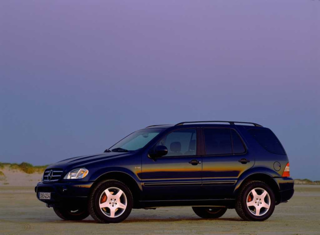 Auf der IAA 1999 präsentiert AMG den Übervater aller SUVs. Der ML 55 AMG verfügt über einen V8 mit 347 PS und 510 Newtonmetern. Dementsprechend tut er so, als würde er die rund zwei Tonnen des ML gar nicht bemerken und schiebt den Allradler in 6,9 Sekunden auf Tempo 100. Auch die Höchstgeschwindigkeit ist mit 232 km/h alles andere als SUV-typisch. Doch AMG wäre nicht AMG, wenn man einfach nur einen fetten Motor in eine Mercedes-Karosserie gesteckt hätte. Das Topmodell der M-Klasse bietet mehr. Beispielsweise diverse Karosserie-Anbauteile, spezifische Stoßfänger, Power Domes auf der Motorhaube und Chrom-Zierteile an der Kühlermaske. Breitreifen im 18-Zoll-Format runden die AMG-Optik ab. Im Innenraum gelingt es Sportsitzen mit Büffelleder-Bezug und Echtholz-Paneelen Oberklasse-Flair in den ML zu zaubern.