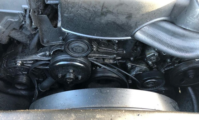 Wer schonmal "Indiana Jones - Jäger des verlorenen Schatzes" gesehen hat und sich an die Szenen mit den glitschigen Schlangen in einer Grube erinnert, weiss jetzt genau, wie der Motorraum aussah. Der zerfetzte Keilrippenriemen hatte zusammen mit dem (bekannten) Ölverlust für ein filmreifes Bild gesorgt. "Der arme Monteuer, der die Sauerei beseitigen muss", dachte ich mitleidig.
