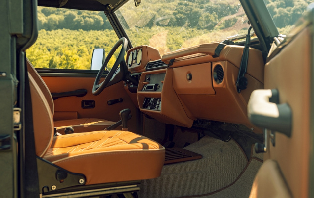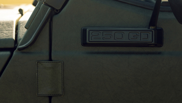 Als Basis für den Umbau diente ein Wolf 250 GD in guten Zustand, ohne Rost. Nachdem Balázs die Karosserie zerlegt hatte, die G-Klasse revidiert hatte und der Lack neu aufgetragen wurde, kam erst die Idee, den Mercedes voll mit Leder zu verkleiden. „Wir wollten einfach mal etwas außergewöhnliches zaubern“, lacht Balázs . Also nahm der Ungar den Zauberstock in die Hand und bezog die komplette Karosserie mit Leder im Military-Look. „Trotz der Lederhaut kann der Wolf täglich benutzt und gewaschen werden“, versichert uns Balasz.