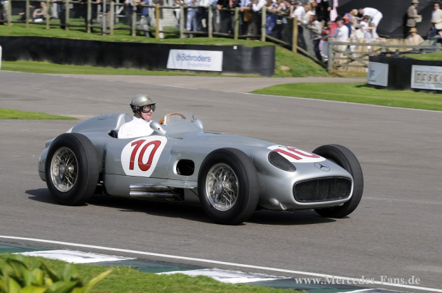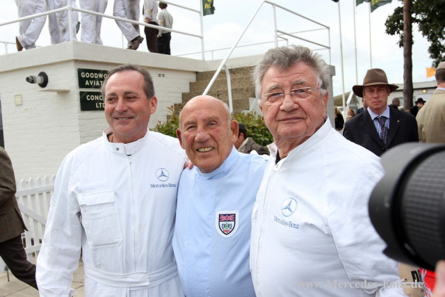 Juan Manuel Fangio II., Stirling Moss, Hans Herrmann (v.l.n.r.), Mercedes-Benz Classic, Goodwood Revival 2011