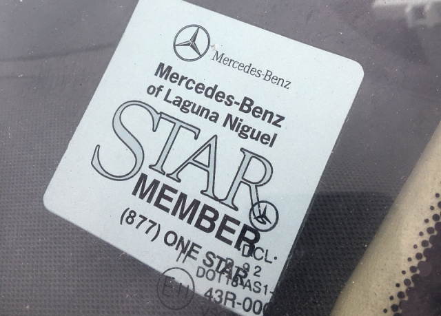 Die Farbe des Fahrzeugs lautet SMOKE SILVER - METALLIC (702) und das Interieur ist aus Leder in CREAM BEIGE - MUSHROOM / QUARTZ (265). Dank der VIN-Nummer konnten wir die Ausstattung des Mercedes herausfinden und auch einen Einblick in die Wartung in den USA gewinnen. Daraus lässt sich ablesen, dass das Fahrzeug 1995 bei einem Check in Hacienda Heights aufgrund der Airbags war. 1999 folgte ein Check in West Mount, 2005 ging es zum Check nach Chicago. Es folgten Checks in Bloomington und San Diego. Toll, was man im Internet alles entdecken kann. Ein Aufkleber auf der Frontscheibe verrät uns, dass der 400 E zuletzt bei "Mercedes-Benz of Laguna Niguel" in Kalifornien gewartet wurde.