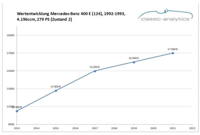 Preislich ist der 400E den kleineren- und sehr viel häufiger gebauten Varianten heute längst entrückt. Zwar werden gute 124er generell nicht billiger, die Preiskurve des 400E aber ist in den letzten Jahren steiler angestiegen. 15.000€ bis 20.000€ sollte man für ein gutes Auto mit nachvollziehbarer Historie einkalkulieren. Dafür bekommt man eine Charakterlimousine, wie es sie vielleicht nur noch selten gibt.