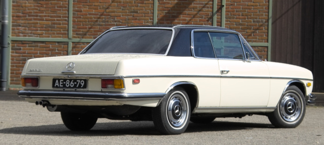 Endlich in den Niederlanden angekommen, war Micky zunächst geschockt. „Auf den ersten Blick hatte der Mercedes schlimm ausgesehen. Wohin man auch sah – überall Schmutz und Dreck. Doch nach einer gründlichen Reinigung sah die /8-Welt schon wieder viel besser aus. So war die Karosserie – wie erhofft – tatsächlich von Korrosion verschont geblieben. Und dank einer sorgfältigen Aufarbeitung der Lackierung des bereits ab Werk in BiColor (Elfenbeinweiß und Schwarz) geduschten Mercedes sollte das Coupé schon bald wieder im alten Glanz erstrahlen.