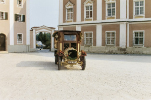 Im Bild rechts: Der erste Kässbohrer Omnibus auf Saurer-Fahrgestell, Baujahr 1911