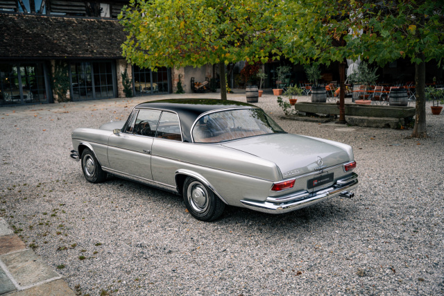 Hier bietet HK-ENGINEERING ein sehr seltenes Mercedes-Benz 300 SE Coupé in toller zweifarbiger Lackierung in Silber und Schwarz mit Lederausstattung in Cognac sowie Matching Numbers an. Das Coupé wurde am 11. Dezember 1967 erstmals in Paris zugelassen und hatte bis heute nur drei Besitzer. Dieser luxuriös ausgestattete Zweitürer wurde ab Werk zusätzlich mit einem elektrischen Schiebedach, automatischem Getriebe mit Mittelschaltung, Becker Radio Grand Prix, elektrischen Fensterhebern, Weißwandreifen sowie dem Wegfall der Automatik Bezeichnung geordert.