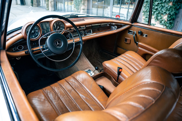 Die Innenausstattung befindet sich noch im Originalzustand und ist wunderschön erhalten. Diverse alte Rechnungen sowie die originale Bordliteratur mit Scheckheft belegen die Laufleistung von 171.300 Kilometern. HK-ENGINEERING hat den Mercedes-Benz im Jahr 2018 erworben und anschließend umfangreiche Arbeiten an Karosserie, Lack, Chrom und Technik durchgeführt. Diese Arbeiten beliefen sich auf knapp 90.000 Euro und sind belegbar.