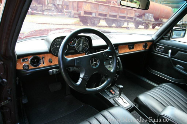 Der W114 verfügt über eine gehobene Ausstattung mit Automatik, Servolenkung, Klimaanlage, elektrische Fensterheber rundum, Colorverglasung, Kopfstützen und Gurte auch hinten. Obwohl in Japan Rechtsverkehr herrscht, werden europäische Luxusautos dort gerne als Linkslenker bestellt, vermutlich um den Flair des Europäischen nicht zu zerstören und die Besonderheit des Fahrzeugs zu unterstreichen, meint der Rheinland-Pfälzer.