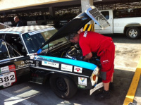 Die schöne gelbe mexikanische Heckflosse ist leider durch Unfall bereits am zweiten Tag des Rennens ausgefallen.
