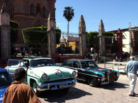 Von 10:00 - 16:00 Uhr werden die Carrera Panamericana Fahrzeuge am "Zocalo" (zentraler Platz) ausgestellt.