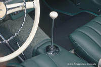 Ein Blick in den Innenraum des Roadsters beweist auch hier die konsequente Umsetzung der Restauration mit dem korrekten Leder auf Sitzen und Türverkleidungen. Dazu verwendeten die SL-Spezialisten ein neues Lenkrad und verlegten natürlich auch einen neuen Teppich für den Innenraum und Kofferraum. Auch das Hardtopdach wurde nicht vergessen und erhielt einen neuen, passenden Himmel.
