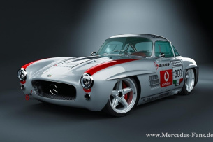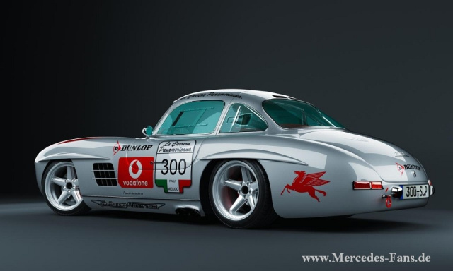 Die imaginäre amerikanische Sportwagen-Manufaktur Gullwing America (GWA) will in diesem Jahr mit zwei modern interpretierten Rennwagen bei der La Carrera Panamericana mitfahren. So tönt es mal wieder aus der vorliegenden "Pressemitteilung". Neben einem Ferrari 340 M/C wählten die Amerikaner eine Retro-Version des legendären Mercedes-Benz 300 SL/R (W198) mit 6,3 Liter V8 und 19" Monoblock-Felgen im klassischen AMG-Look. Mit diesem neuen Design und der modernen Technik zollt die amerikanische Firma dem legendären Flügeltürer, der bei der Carrera Panamericana im Jahr 1952 seinen ersten Sieg einfuhr, Tribut.