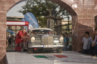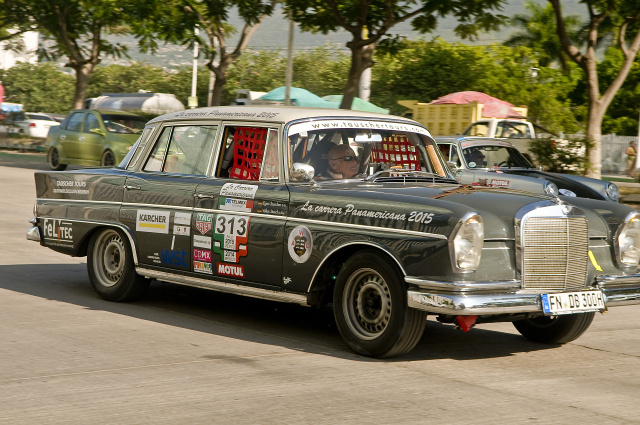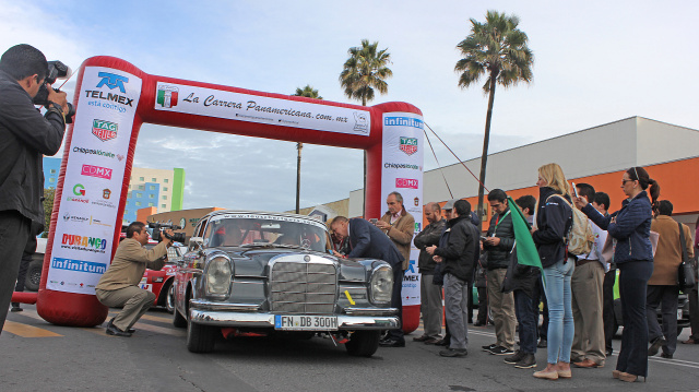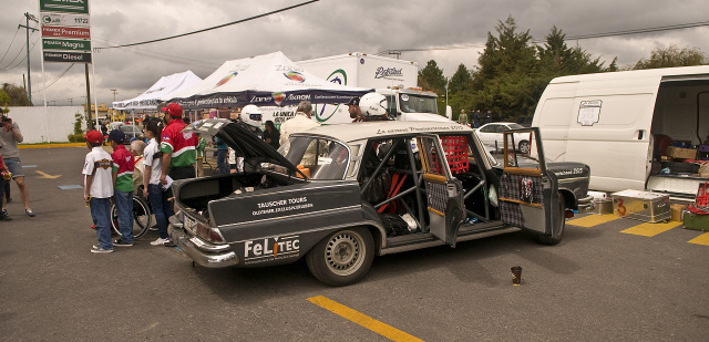 Am Tag nach der Abnahme ging es dann endlich fast richtig los. Das Qualifying stand nun an. Wie auch zum Beispiel in der Formel 1 wird beim Qualifying die Startfolge für das eigentliche Rennen festgelegt. Bei der Carrera Panamericana wird die Hackordnung aber nicht auf einer schnöden Rundstrecke ausgelotet, sondern auf Speed Etappen auf offener Straße, wo ja auch das eigentliche Rennen ausgetragen wird. Egon Tauscher hatte mit seiner flotten Heckflosse das Glück, dass das Qualifying in den Bergen auf kurvenreichen Strecken statt fand und nicht auf langen Geraden. So konnten die 800Ps Boliden ihren Geschwindigkeitsvorteil nicht ausspielen. Die Flosse landete auf einem sehr guten 35. Startplatz, von ca. 100 Teilnehmern. In der Gesamtwertung waren die High Tech Rennwagen natürlich unantastbar, aber Egon Tauscher hatte gute Chancen sich in seiner Klasse weit vorne zu platzieren. Der erfahrene Rallyefahrer war zugegebener Maßen sehr aufgeregt vor dem Start. Verständlich, ging doch ein lang ersehnter Traum in Erfüllung. Die beiden Mercedes Teams haben sich gegenseitig unterstützt und die Mechaniker haben auch organisatorische Aufgaben übernommen. Somit blieb Egon Tauscher noch genügend Zeit die einzigartige Atmosphäre der Rennveranstaltung wahr zu nehmen, neben Fahrerbriefings und den anderen Terminen.