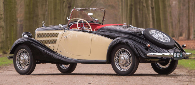 Seinerzeit wurde der Mercedes 170V Sport-Roadster nach Kopenhagen in Dänemark ausgeliefert, wo er bis 2011 angemeldet war. Der neue Eigentümer ordnete sogleich eine umfassende Restaurierung an. Getreu den Vorgaben des damaligen Verkaufsprospekts erhielt der Roadster die originale Zweifarb-Lackierung, welche ihm so vortrefflich steht. In Kombination mit der roten Innenausstattung sprüht der Mercedes – trotz seines fortgeschrittenen Alters von immerhin jetzt 77 Jahren! - nur so vor Tatendurst und Sportsgeist.