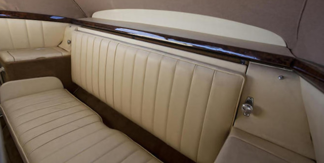 1989 wurde der Wagen einer gründlichen Instandeertzung unterzogen. Im Zuge dieser Arbeiten wurde das Leder der Innenausstattung ersetzt, neue Teppiche verlegt und eine Motorrevision vorgenommen. Die verbauten Hölzer präsentieren sich tadellos aufgearbeitet und in 10 Schichten lackiert. Von seiner schönsten Seite zeigen sich zudem das Lenkrad und das mit einem neuen Innenhimmel versehene Verdeck.