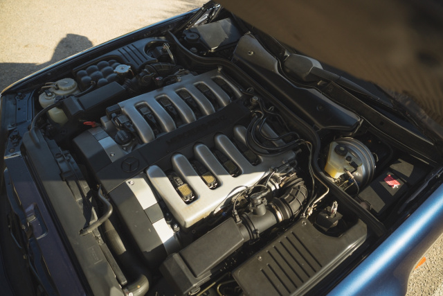 Bei vielen Klassikfans im Fokus: gerade auch als 4,47 Meter langer 600er, der sich lange Zeit auf dem Markt der älteren Gerbrauchtwagen schwertat. Die Liebe galt dem 500er mit seinem unverwüstlichen V8; gefolgt vom deutlich leichteren und sparsameren SL 320, zunächst mit einem 231 PS starken Reihensechszylinder unterwegs, der dann von einem V6 mit nahezu identischen 224 PS abgelöst wurde. Während seines zwölfjährigen Modellzyklus sorgte eine Umstrukturierung in der Nomenklatur innerhalb des Mercedes-Konzerns kurz für Verwirrung: die bis zum Juni 1993 produzierten Fahrzeuge tragen das SL hinter der dreistelligen Motorenkennzahl, alle Nachfolgenden davor. Die Krone der SL-Schöpfung und erstmals ein V12 in einem offenen deutschen Zweisitzer nach dem Weltkrieg ist der SL 600. Der sechs Liter große Vierventiler leistet imposante 290 kW / 394 PS (vorher 300 kW / 408 PS) und ein maximales Drehmoment von 570 Nm. Der Schub ist nach einer leichten Verzögerung gewaltig, während das V12-Triebwerk der Bauart M120 so leise vor sich hinsäuselt, dass selbst unter Lastanforderungen kaum mehr als hintergründiges Grollen zu vernehmen ist. Der Drehzahlzahlmesser verharrt meistens nennenswert unter der 2.000-Touren-Marke. Das mag auch am größten seinerzeit gebauten Katalysator gelegen haben, der viele der Abgasgeräusche in sich versteckte.