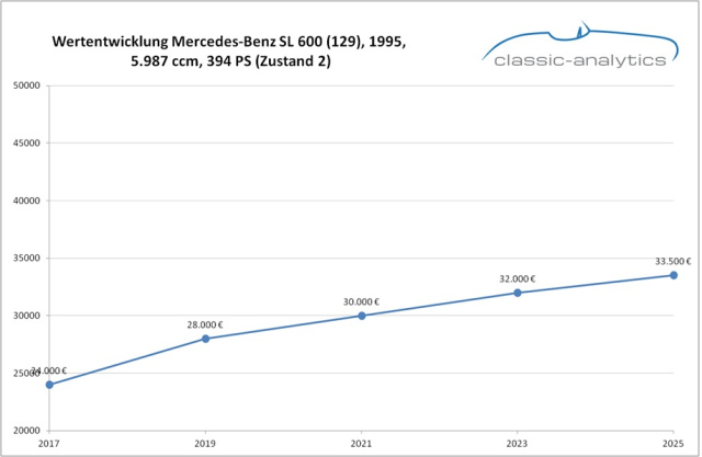 Während der Nachfolger der Baureihe R230 in seinen verschiedenen Motorvarianten nach wie vor für überschaubares Geld und Preisen von unter 25.000 Euro zu bekommen ist, sieht das beim Vorgänger ganz anders aus. Besonders begehrt sind die Fahrzeuge der letzten Modellreihe und somit ab dem Modelljahr 1999. Sie bieten Xenonlicht, geänderte Rückleuchten, Schürzen und die modernere Mittelkonsole. Beliebtestes Modell ist der Mercedes SL 500, dicht gefolgt vom 320er. Gut erhaltene R129er mit kompletter Ausstattung liegen bei über 30.000 Euro. Die 500er kosten bisweilen über 45.000 Euro – gerade limitierte Editionen und Designo-Modelle ohne die bisweilen verbreiteten Fehlfarben. Für einen SL 600 mit einer Laufleistung von unter 100.000 Kilometern und lückenloser Wartungshistorie sind jedoch bis zu 60.000 Euro drin.