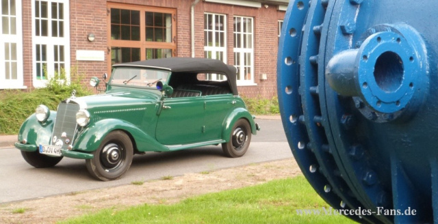 Ein Offener Tourenwagen Polizei", Kürzel 170 D OTP, mit seinen Steckscheiben, seiner umlegbaren Windschutzscheibe und seinem Flatterverdeck gehört wohl zu den Publikumsmagneten jeder von ihm besuchten Veranstaltung, bei der es um motorisiertes altes Blech geht. Wie selten der Viertürer zu sehen ist, lässt sich daran ermessen, dass zu seiner Bauzeit zwischen 1951 und 1952 nur 530 Exemplare entstanden. Damit ist er seltener als ein Flügeltürer! Einer dieser Dienstwagen mit originalem Blaulicht und Fanfare gehört Thomas Robens aus Düsseldorf.