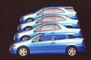 Ein Auto, vier Fahrzeuge – die Variabilität stand bei der Konzeption des Vario Research Car (VRC) von Mercedes-Benz, das auf dem Automobilsalon in Genf (9. bis 19. März 1995) eine viel beachtete Premiere feierte, im Vordergrund. Denn das VRC ließ sich innerhalb weniger Minuten in ein anderes Auto verwandeln - darunter auch in einen Pickup!