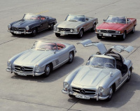 Der Zweisitzer mit dem Stern hat im Laufe seiner Karriere stets technische Innovationen gebracht: Nachdem der Ur-300 SL im Jahr 1952 mit einem Doppelsieg bei dem 24-Stunden-Rennen von Le Mans und bei der mörderischen Carrera Panamericana in Mexiko sowie bei weiteren Rennen Furore machte, setzte das erste käuflich zu erwerbende Serienmodell, der 300 SL Flügeltürer der Baureihe W 198, ab dem Jahr 1954 Zeichen im Serien-Automobilbau: Er war der erste Serien-Pkw mit Viertakt-Direkteinspritzermotor.