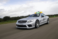 Mercedes-Benz SL 63 AMG (R 230, Safety Car, 2009) Nach 12 Jahren Bauzeit und zwei Modellpflegen wird die Baureihe R 129 im Jahr 2001 von der Baureihe R 230 abgelöst erstmals trägt der SL nun ein Stahl-Faltdach. Damit wird der Wagen zu offenem Fahrzeug und Coupé in einem. Die Verwandlung auf Knopfdruck dauert gerade mal 16 Sekunden. In den Jahren 2008 und 2009 kommt der von einem 386 kW (525 PS) starken 6,3-Liter-V8-Motor angetriebene SL 63 AMG als Official F1 Safety Car in der Formel 1 zum Einsatz. Dieser SL erinnert an die Motorsport-Wurzeln der SL-Familie und steht auf der Techno Classica 2012. Für seinen Rundkurs-Einsatz ist er umfangreich modifiziert, unter anderem durch Gewichtserleichterung; so hat er beispielsweise keine Dachmechanik und kein festes Verdeck.