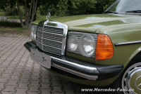 Als Mercedes-Benz die neue Limousine der obere Mittelklasse 1976 auf den Markt bringt, ist auf den ersten Blick deren Zugehörigkeit zur aktuellen Stuttgarter Modellgeneration zu erkennen: Wie die S-Klasse W 116 und der neue SL der Baureihe 107 hat der W 123 quer liegende Scheinwerfer statt der früher aufrecht stehenden Leuchten. Das Gros der Modelle beleuchtet die Fahrbahn mit runden Scheinwerferpaaren, liebevoll "Ochsenaugen" genannt, die jeweils hinter einer gemeinsamen, rechteckigen Streuscheibe untergebracht sind.