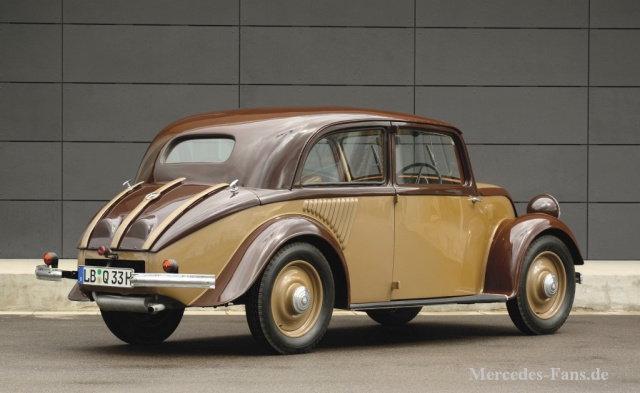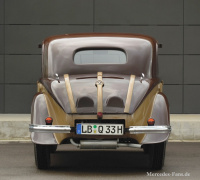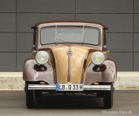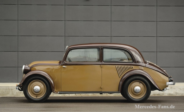 Rechtslenker-Mercedes-Benz sind nicht allzu häufig auf Messen oder Veranstaltungen zu sehen, erst recht, wenn sie wie der hier gezeigte W23 Typ 130 aus den 1930er Jahren stammen. Bereits 1934 brachte Mercedes-Benz den 130 auf den Markt. Die Besonderheiten des kompakten Automobils der Baureihe W23 war unter anderem der fehlende Mercedes-Benz typischer Kühlergrill. Den brauchte man nämlich nicht, denn der Motor der kompakten Mercedes saß nicht vorne sondern wie beim VW Käfer im Heck!