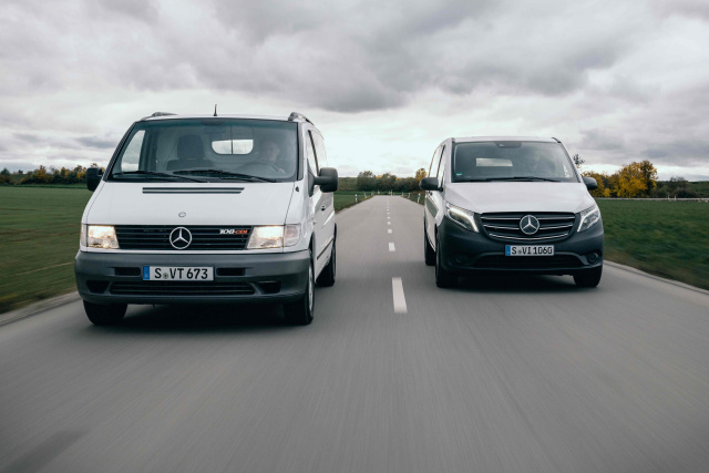 Mit dem eVito folgte 2018 zudem der erste serienmäßig vollelektrische Midsize Van von Mercedes‑Benz. Auch in puncto Sicherheit setzte die dritte Generation erneut Maßstäbe: Als einziger Transporter in seiner Klasse verfügte der Vito Kastenwagen serienmäßig über Airbags und Gurtwarner für Fahrerinnen bzw. Fahrer sowie Personen auf dem Beifahrersitz. Der Vito Tourer bot sogar maximal acht Airbags für alle Insassen. Einzigartig für einen Midsize Van war damals auch der Seitenwind-Assistent in der Grundausstattung.