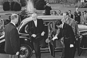 Konrad Adenauer und Ludwig Erhard, die beiden Leitfiguren des nach dem zweiten Weltkrieg ins Wirtschaftswunder aufbrechenden Deutschland und ihr jeweiliger Dienstwagen, der Adenauer: Er war im April 1951 die Sensation der ersten Nachkriegs-Automobilausstellung (IAA) in Frankfurt und stach damit sämtliche anderen Premieren wie von Borgward Hansa oder Opel Kapitän ´51 locker aus. Schon kurz nach seinem Messebesuch entschied sich Der Alte für seinen künftigen Weggefährten. Im Laufe seiner Kanzlerzeit sollten ihn aufeinander folgend sechs 300er begleiten.