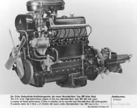 Die Sechszylindermaschine des Adenauer war hervorgegangen aus einem vor dem Krieg nie realisierten 2,6 Liter Antrieb. Welches Potenzial in ihm steckte, zeigte dieses Aggregat, das der seinerzeit im Rennsport gültigen Hubraumgrenze von 3 Litern entsprach, als Basis der Entwicklung des Motors für den kommenden Flügeltürer. Auf dem Genfer Salon 1954, dem Jahr, als der 300 SL als Straßenversion in New York vorgestellt wurde, zeigte sich auch der 300er als 300b mit immerhin 125 PS von einer stärkeren Seite. Außerdem unterschied er sich ab jetzt von seinem Vorgänger unter anderem durch vordere Ausstellfenster, Stoßstangenhörner vorn und hinten sowie größere Bremsbeläge. In Verbindung damit erhielt er einen Bremskraftverstärker.
