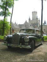 Die anschließende Fahrt zu den Aufnahmen an der Marienburg, Wohnsitz der aus der Boulevard-Presse bekannten Königlichen Hoheit Ernst August, Prinz von Hannover, stimmt in ihrem sanften Gleiten auf die zu erwartende Umgebung ein. Die elektrisch zuschaltbare Drehstabfederung für den Niveauausgleich der Hinterräder ist perfekt auf die Passagieranzahl und den zu erwartenden Straßenzustand eingestellt, dazu rundum Luxus aus Wirtschaftswunderzeiten. Zwischendurch erzählt Bernd Maschke aus dem jetzigen Leben des Fahrzeugs. So fuhr unter anderem Angela Merkel vor ihrer Kanzlerschaft bei einem Wahlkampftermin eines Enkels Konrad Adenauers in ihm.