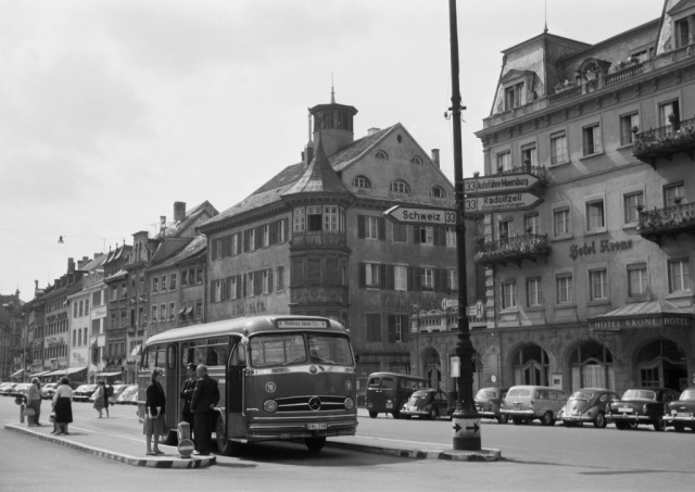 Als Stadtlinienbus dreht dieser O 321 H 1960 in Konstanz seine Runden.
