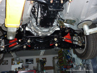 Doch was auf der einen Seite eingespart wird, kommt auf der anderen wieder drauf. Durch verschiedene Verstärkungen, die Fahrverhalten und Sicherheit verbessern, kommt der Strichacht Rennwagen sogar über das Gewicht eines normalen Serienwagens. So bekam das Mercedes-Benz Coupe ein Bilstein Fahrwerk, das vor der Montage nochmals überarbeitet und verstärkt wurde. Aufgrund der seriennahen Einstufung werden die Rennrunden mit originalen Bremssätteln und Scheiben gedreht. Um eine gute Bremsleistung auch bei schlechtem Wetter zu garantieren, wurden Regenschlitze in die Bremsscheiben gefräst und Bremsbeläge aus leistungsfähiger, belastbarer Keramik verbaut.