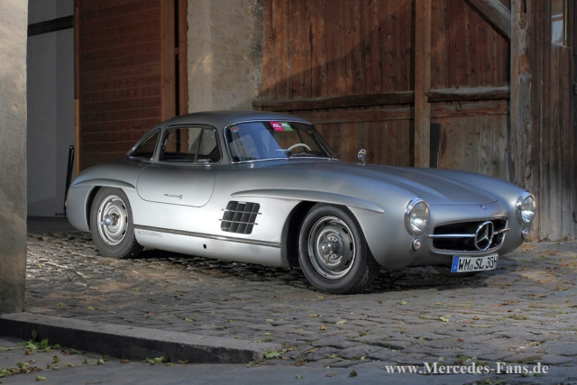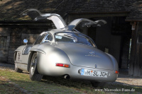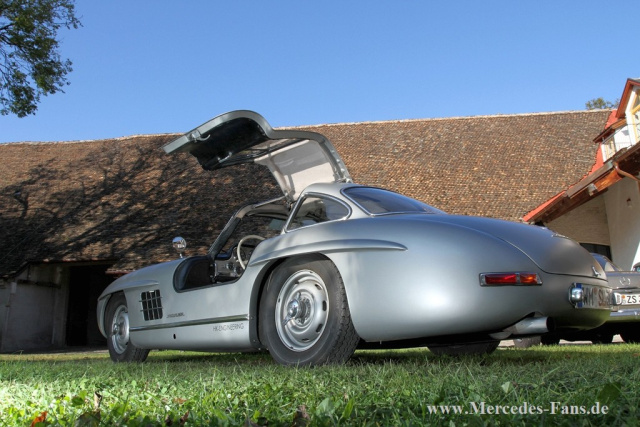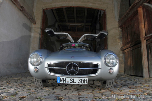 Ein prächtiger Herbst-Tag im Oktober 2011, im Rahmen einer Veranstaltung fuhren wir zum alten Kloster nach Polling/Bayern, wo heute Hans Kleissl mit seiner Firma HK Engineering jedem Mercedes 300SL und auch anderen hochkarätigen Mercedes Modellen in Form von aufwändigen Restaurierungen ein neues Leben verleiht. Inmitten vieler schöner Sterne erblickten wir jenen Flügeltürer, welcher unter der Baureihe W198 gelistet ist. Ohne Zweifel, das musste er sein, der mattgraue 300SL von Porfirio Rubirosa.