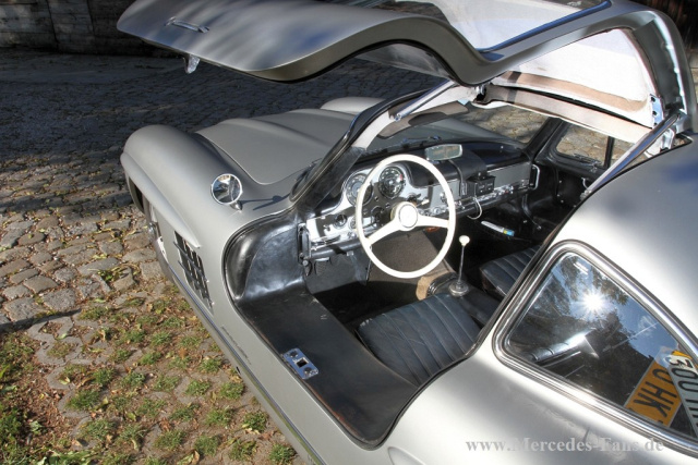 Viele Auto-Enthusiasten träumen ein Leben lang von derartigen Sportwagen. Wir durften diesem SL in die Augen schauen, ihn liebevoll betrachten und über die reizenden Kotflügel streicheln. Anschließend war es uns gestattet, die legendären Flügeltüren nach oben zu schwingen und respektvoll in die schwarzen Ledersitze zu gleiten. Einst saßen Sie hier, gewissermaßen direkt neben uns, weltumschwärmte Frauen von Leinwand und Cover der Magazine.