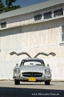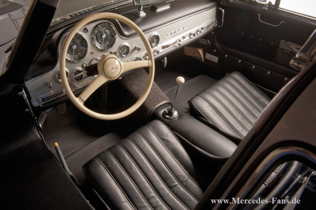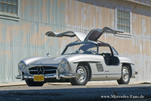 Die bemerkenswerten, nach oben öffnenden Flügeltüren des Rennfahrzeuges wurden natürlich in die Serienversion übernommen und war das Markenzeichen des 300 SL. Nach dem Ende der Produktion im Jahr 1957 war die 1.000er Bestellung des amerikanischen Importeurs abgearbeitet, insgesamt wurden 1400 Fahrzeuge zum Teil in Handarbeit gefertigt. Die Nachfrage war stark und bleibt es bis heute, der 300 SL ist einer der begehrtesten Sportwagen und für viele Auto-Sammlungen und Museen das Highlight.