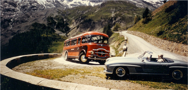 Als die Alpenüberquerung noch ein Abenteuer war. David Douglas Duncan setzte den 300 SL gekonnt in Szene - selbst am Straßenrand!