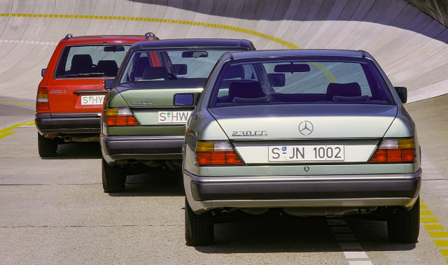 Die Baureihe 124 setzt vor 40 Jahren technische Maßstäbe in ihrem Segment: Zu ihren Kennzeichen gehören hochfeste Stahlbleche und gewichtsreduzierende Materialien. Hervorragende Ergebnisse bei anspruchsvollen Offsetcrashs belegen ein Höchstmaß an passiver Sicherheit. Die optimierte Aerodynamik führt zu Bestwerten innerhalb der Mercedes-Benz Personenwagen. Zu den wegweisenden Systemen, die in der Baureihe 124 Premiere haben, gehören der Panorama-Scheibenwischer mit dem damals weltweit größten Wischerfeld und die erste Generation des Allradantriebs 4MATIC.
