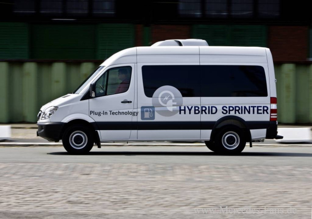 Es kommt 2008 zudem die Option auf eine Luftfederung statt der serienmäßigen Schraubenfederung an der Hinterachse. Das adaptive ESP wird um ein adaptives Bremslicht erweitert, das als blinkendes Notbremssignal arbeitet. Als optionale Erweiterung bei den Schaltgetrieben gibt es den Anfahrassistenten (AAS). Auch bei den alternativen Antrieben geht es voran: Für den Sprinter sind 16 Erdgasvarianten abrufbar. Im September tut sich auf der IAA Nutzfahrzeuge in Hannover ein weiterer Blick in die Zukunft von Mercedes-Benz Vans auf: Herausragendes Exponat ist ein Sprinter Plug-In Hybrid mit einem Elektromotor zwischen Verbrennungsmotor und Automatikgetriebe. Unmittelbar nach der Hinterachse ist bei dieser Neuheit ein Satz Lithium-Ionen-Batterien untergebracht. Diese Batterietechnik halbiert bei vergleichbarer Kapazität das Gewicht gegenüber den vordem verwendeten Nickel-Metallhybrid-Batterien auf nur noch 175 Kilogramm.