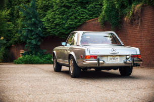 Der Erst-Besitzer des hier gezeigten Modell stammt aus dem kalifornischen in San Diego, wohin der Roadster auch ausgeliefert wurde. Irgendwann zog die Pagode an die Ostküste um genauer nach Florida und Palm Beach, der der Mercedes-Fahrer noch eine Urlaubs-Residenz hatte. Das ist auch sicherlich der Grund dafür, warum der Wegstreckenzähler gerade einmal 52.000 Meilen aufweist.