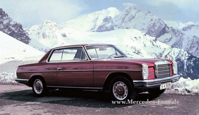 Der Mercedes-Benz /8 als Gipfelstürmer? Warum nicht? Als 280 CE Coupé können die 185 Pferdchen im R6-Motor so einige Berg-Etappen bezwingen. Aber wer oben ist, muss auch irgendwie wieder herunter kommen. Kein Problem! Dank vier serienmäßigen Bremsscheiben kommt der W114 auch auf Snow´n´Ice immer sicher ans Ziel.