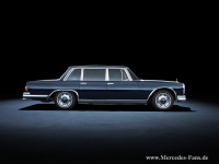 In der Tradition der Großen Mercedes stehen die Repräsentationsfahrzeuge des Typ 600 (W 100), die Mercedes-Benz 1963 vorstellt. Das exklusive Spitzenprodukt der Marke ist als Limousine mit normalem und langem Radstand sowie als Landaulet lieferbar. Seine umfangreiche Ausstattung bildet den Stand des technisch Machbaren der Zeit ab.