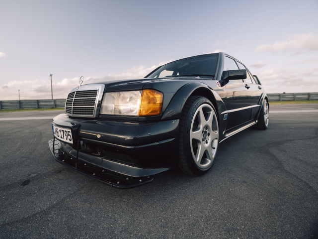Der Mercedes-Benz 190 E 2.5-16 Evo II ist spektakulär; sein Aussehen polarisiert. Allzu sehr mussten ihm seinerzeit die Daimler-Entwickler technisch auf den Leib rücken, um den letzten Funken Fahrdynamik aus ihm herauszukitzeln, derartige Bestleistungen bringen zu können. Tiefer Frontspoiler, Spurverbreiterungen vorne wie hinten, dicke Kotflügelbacken und Schweller rundum sowie einen gigantischen Heckflügel, der für den nötigen Abtrieb an der Hinterachse sorgen sollte – das alles schafft mächtig Eindruck. Nach der AMG-Rennkur war der Mercedes-Benz 190 E 2.5-16 Evo II kaum mehr wiederzuerkennen. Voll ausgedreht schafft der Renner mit Straßenzulassung Tempo 250 und beschleunigt in seinerzeit mehr als beeindruckenden 7,1 Sekunden aus dem Stand auf Tempo 100. Noch wilder trieb es die offizielle Rennvariante. Ihre Motorleistung wurde auf deutlich mehr als 300 PS gesteigert, während die 1,3 Tonnen schwere Limousine im Renntrimm gleichzeitig auf weniger als 1.000 Kilogramm abspeckte. Die Höchstgeschwindigkeit: rund 300 km/h. 1992 wird das Engagement durch den Titelgewinn von Klaus Ludwig in der Deutschen Tourenwagen Meisterschaft belohnt.