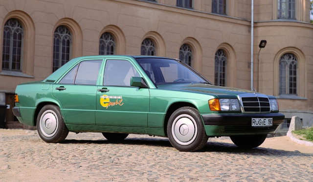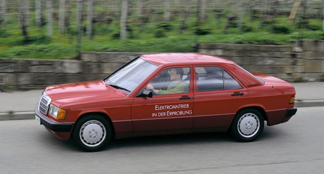 Im Mai 1990 zeigt Mercedes-Benz auf dem Innovationsmarkt der Hannover Messe einen auf Elektroantrieb umgerüsteten Typ 190 (W 201). In einer Broschüre heißt es: „So dient der Mercedes 190, der von Länge und Gewicht den Anforderungen eines Elektrofahrzeugs am nächsten kommt, als Batterie-Erprobungsträger. Dabei geht es hauptsächlich um die Überprüfung der Funktionstauglichkeit aller Komponenten, und zwar unter realen Bedingungen mit all den Vibrationen, Beschleunigungen und Temperaturschwankungen des Alltagsbetriebs".