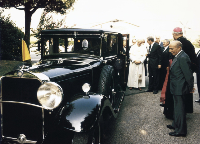 Das Mercedes-Benz 230 G „Papamobil“ von 1980 gehört zur langen Geschichte der Mercedes-Benz Papstwagen. Diese Historie beginnt 1930 vor 90 Jahren mit dem Typ Nürburg 460 (W 08), individuell aufgebaut im Sonderwagenbau in Sindelfingen. Es folgen unter anderem vor 60 Jahren ein Mercedes-Benz 300 Landaulet (W 189, 1960) und vor 55 Jahren ein Mercedes-Benz 600 Pullman Landaulet (W 100) als Repräsentationsfahrzeuge des Papstes. Dazu kommen weitere Fahrzeuge der S-Klasse-Limousine bis zur M-Klasse. Wohl kein Papstwagen ist aber im öffentlichen Bewusstsein so eng mit den Auftritten des reisefreudigen Papstes Johannes Paul II. verbunden wie das „Papamobil“ auf Basis der G-Klasse.