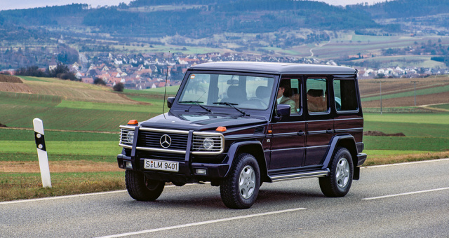 Die G-Klasse ist die mit Abstand am längsten produzierte Modellreihe von Mercedes-Benz und Urvater aller SUV mit Stern. Sie wird 1979 vorgestellt. Die einfach ausgestatte erste Baureihe W 460 ist für harte Alltagseinsätze beispielsweise von Förstern, Landwirten, beim Militär oder auf unbefestigten Pisten in aller Welt konzipiert und konstruiert. Überlegende Geländegängigkeit kombiniert der „G“ mit vollwertiger Straßentauglichkeit und Sicherheit. Allradantrieb und Differentialsperren mit 100 Prozent Wirkung gehören ebenso zu diesem Fahrzeug wie der rigide Leiterrahmen.