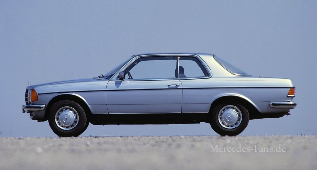 Im März 1977 zeigt Mercedes-Benz in Genf das Coupé der Baureihe 123. Während die Coupés der Strich-Acht-Reihe sich stilistisch sehr eng an der Limousine orientierten, sind die neuen Typen 230 C, 280 C und 280 CE etwas eigenständiger geraten. Der gegenüber der viertürigen Version 8,5 Zentimeter kürzere Radstand verleiht dem Coupé im Zusammenspiel mit seinem niedrigeren Dach und den stark geneigten Front- und Heckscheiben eine gedrungene, sportlichere Erscheinung. Bei der Ausstattung orientieren sich die Coupés an den gehobenen Ausführungen der Spitzen-Limousinen 280 und 280 E. Dazu gehören für alle drei Coupé-Typen rechteckige Breitband-Scheinwerfer, verchromte Lufteinlassgitter vor der Frontscheibe und Chromleisten unter den Heckleuchten. Mit dem Vierzylinder-Coupé vom Typ 230 C (109 PS), sowie den beiden Sechszylinder-Typen 280 C (156 PS) und 280 CE (177 PS) gibt es zum Start der Produktion drei Versionen mit Benzinmotor.
