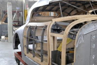 Wie in den 1930er-Jahren wird das Fahrzeug klassisch aufgebaut: Auf dem Stahlrahmen mit der kompletten Technik ist ein Holz-Hilfsrahmen aus Eschenholz angebracht, der die Karosserie hält. Diese wird zwar unter Zuhilfenahme von Maschinen, doch mit viel Handarbeit aufgebaut wie früher in der Abteilung Sonderwagenbau. Rund 4.800 Arbeitsstunden gehen allein in die Karosserie. Für jedes Detail wird eine Konstruktionszeichnung angefertigt. Am Ende begeistert die Genauigkeit: Alle Karosserieteile passen perfekt zusammen. Und wenn die Fahrzeugtüren satt ins Schloss rasten und die Fugen ein schmales und gleichmäßiges Bild zeigen dann wird das wieder aufgebaute Fahrzeug zu einem Zeugen seiner Zeit und zugleich zu einem Botschafter für hochwertigste Fahrzeugrestaurierung. Und das Schild Sindelfinger Karosserie an der linken Fahrzeugseite wird erneut zum Gütesiegel für eine individuelle Ausführung in höchster Qualität.